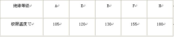 所謂極限溫度,是指電動機絕緣結(jié)構(gòu)中最熱點的最高容許溫度。其技術(shù)數(shù)據(jù)見下表:
